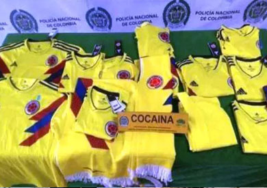 أعلنت الشرطة الكولومبية أنها صادرت 14 قميصا تحاكي قمصان المنتخب الكولومبي لكرة القدم قبل تهريبها إلى هولندا بعد نقعها وخلطها بمخدر الكوكايين عن طريق عملية كيميائية.