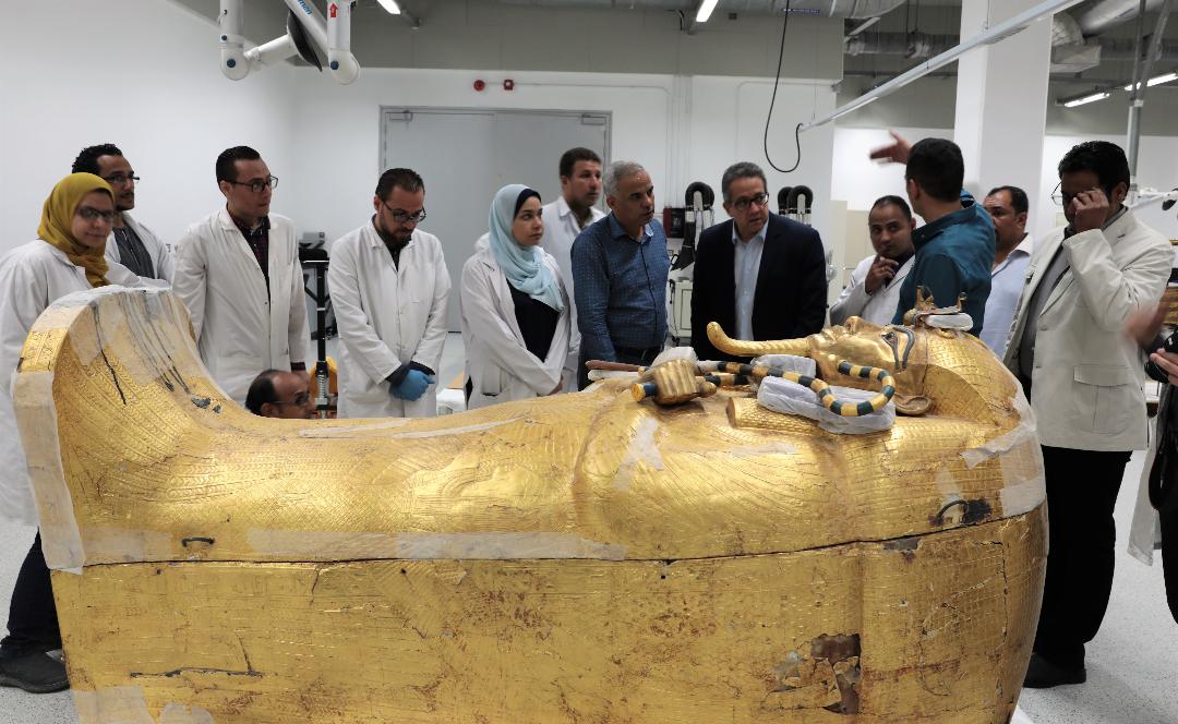 تابع وزير الآثار، اليوم الاثنين، عملية نقل التابوت المذهب الكبير للملك توت عنخ آمون من منطقة العزل بالمتحف المصري الكبير إلى معمل ترميم الأخشاب؛ للبدء في أعمال التعقيم تمهيدًا للبدء في ترميمه للمرة الأولى منذ اكتشاف المقبرة في نوفمبر 1922، إيذانًا بعرضه مع باقي توابيت الملك الشهير ضمن مقتنياته عند افتتاح المتحف في الربع الأخير من عام 2020.