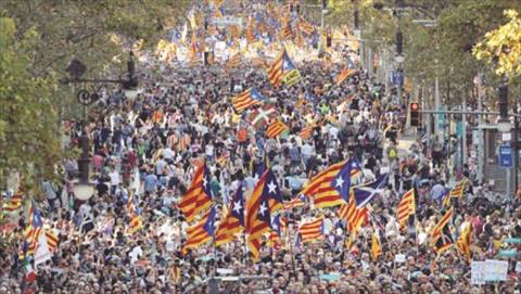 وخرج بوجديمونت وأعضاء حكومته، أمس، فى مسيرة ببرشلونة، شارك فيها عشرات الألاف، مرتدين أوشحة صفراء دعما لاثنين من زعماء حملة الاستقلال أودعا السجن لإدانتهما بالتحريض.