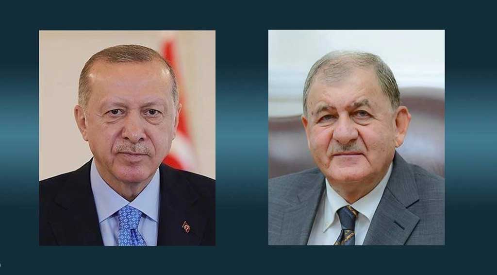 وأكد الرئيس العراقي "أهمية العلاقات مع الجارة تركيا وضرورة تعزيزها في مختلف المجالات وبما يؤمّن المصالح المشتركة ويحقق تطلعات الشعبين الصديقين في التطور والرفاه".