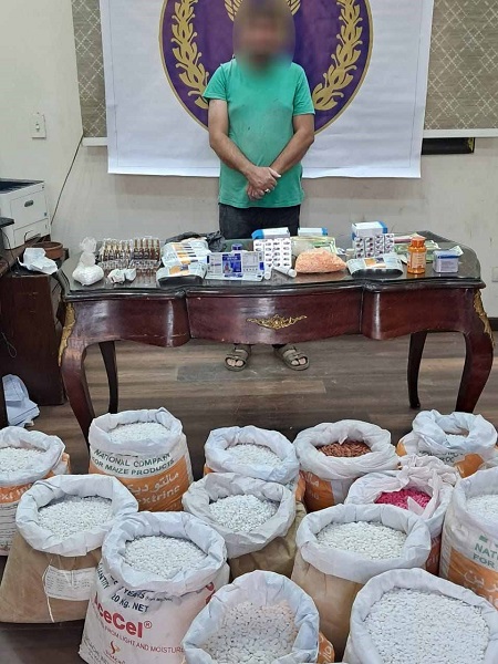 وضبطت الأجهزة الأمنية صاحب شركة توريدات حال استقلاله سيارة بدائرة قسم شرطة الشروق. وبحوزته (كمية كبيرة من العقاقير والأدوية، كمية من الملصقات، مبلغ مالي).