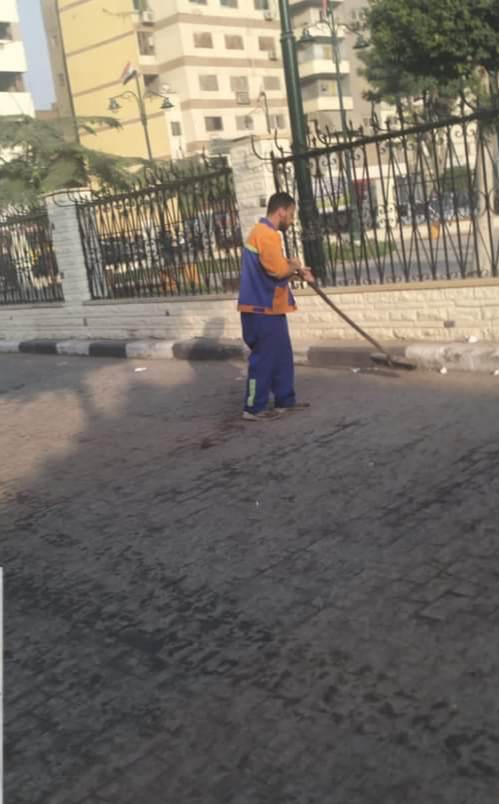 رئيس حى المطرية: جارى تركيب بلاط انتر لوك أمام مسجد صفية بشارع بورسعيد