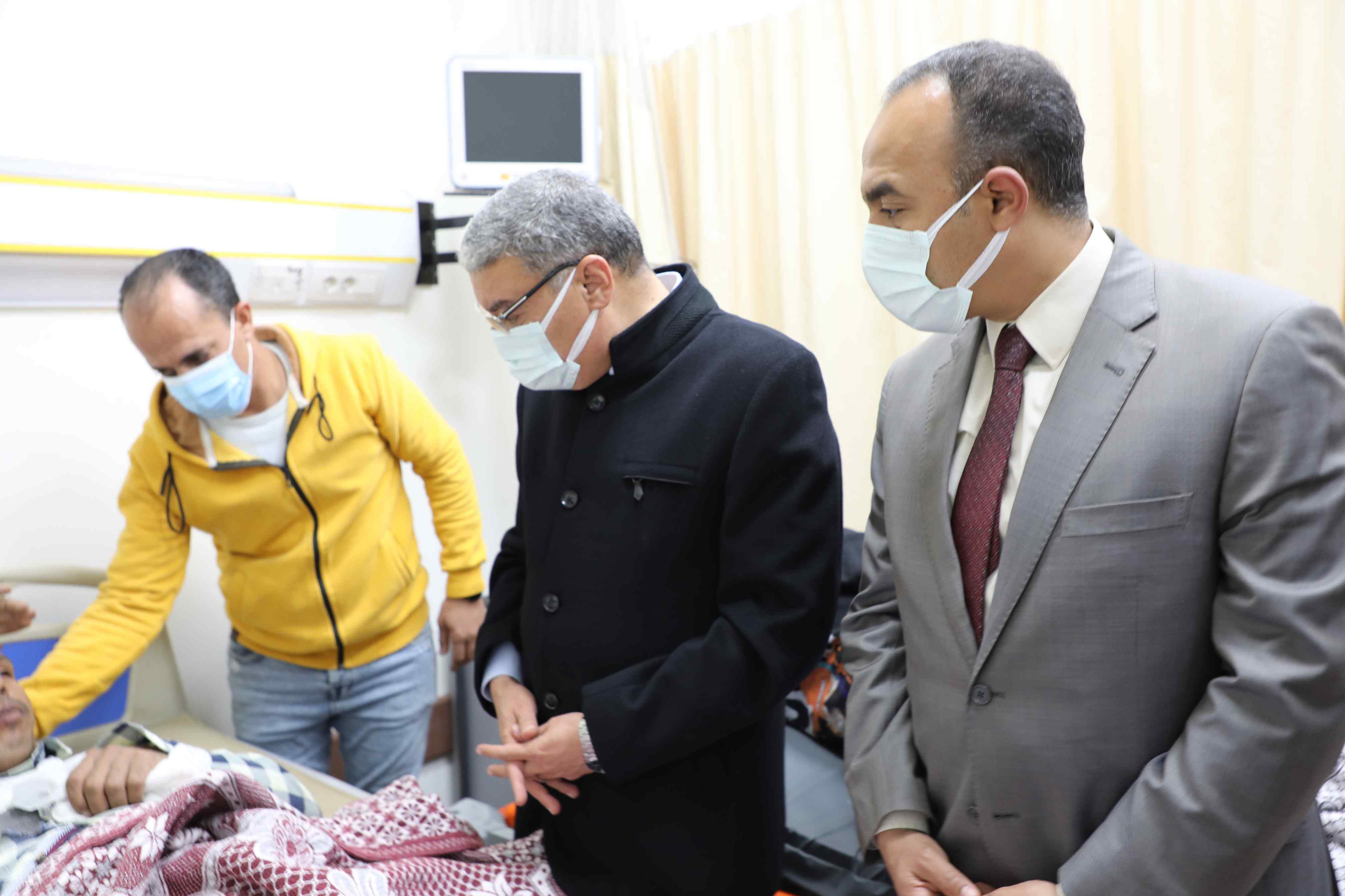 واطمئن رئيس المركز، على تلقي المصابين الرعاية الطبية والعلاجية اللازمة، موجها بالمتابعة الدورية والمستمرة للحالة العامة للمصابين، وتوفير الخدمة الطبية اللائقة حتى تماثلهم للشفاء وخروجهم من المستشفى.