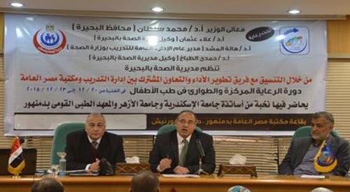 جاء ذلك خلال حضوره دورة الرعاية المركزة والطوارئ في طب الأطفال، التى نظمتها مديرية الصحة بالتعاون والتنسيق مع الإدارة العامة للتدريب بوزارة الصحة، بمكتبة دمنهور العامة خلال الفترة من 10 إلى 23 ديسمبر الجاري، والتي حاضر فيها نخبة من أساتذة جامعات الأزهر والإسكندرية والمعهد الطبي القومي بدمنهور، حيث استهدفت الدورة أطباء الأطفال والعناية المركزة بالمستشفيات بهدف تدريب الأطباء بالمستشفيات فنيا وطبيا وإداريا.