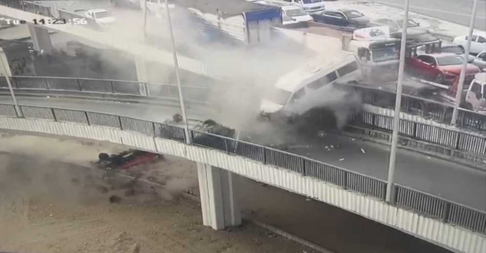 وتبين اصطدام سيارة نقل مقطورة بعدد من السيارات؛ ما تسبب في إطاحة 3 سيارات "ميكروباص، وملاكي، ونقل محملة بالمواشي".