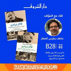 تستضيف دار الشروق لقاءً مفتوحًا مع الكاتب والباحث عاطف بطرس العطار، للحديث عن كتابيه «فالتر بنيامين بين وهم العلمانية والعقل الدنيوي» و«فالتر بنيامين: مختارات عن النسخ النقدية الألمانية»، الصادرين عن دار الشروق، وذلك غدا السبت في تمام الساعة الرابعة مساءً، بجناح دار الشروق "قاعة 2 – رقم B28"، ضمن فعاليات معرض القاهرة الدولي للكتاب 2026.