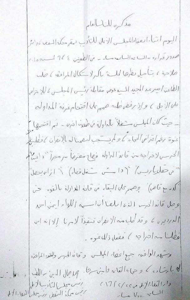 صورة من مذكرة مجلس التأديب الأعلى للنائب العام