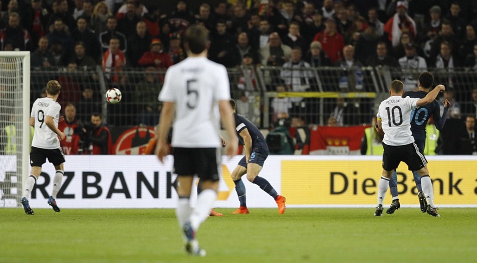 استشعر المنتخب الألماني الحرج، وسدد بودولسكي من خارج المنطقة في الدقيقة 37، ولكن الكرة مرت بعيدة تماما عن المرمى.