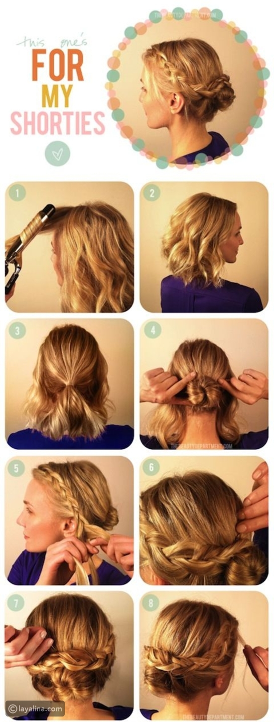 - تسريحة لذوات الشعر المجعد قليلاً: ستحصلين على طلة جميلة وعفوية لشعركِ حين تقومين بقسمه لثلاثة أقسام. اصنعي جديلتين وطوّقي بهما الجزء النصفي الذي جعلته كما لو كان كعكة.