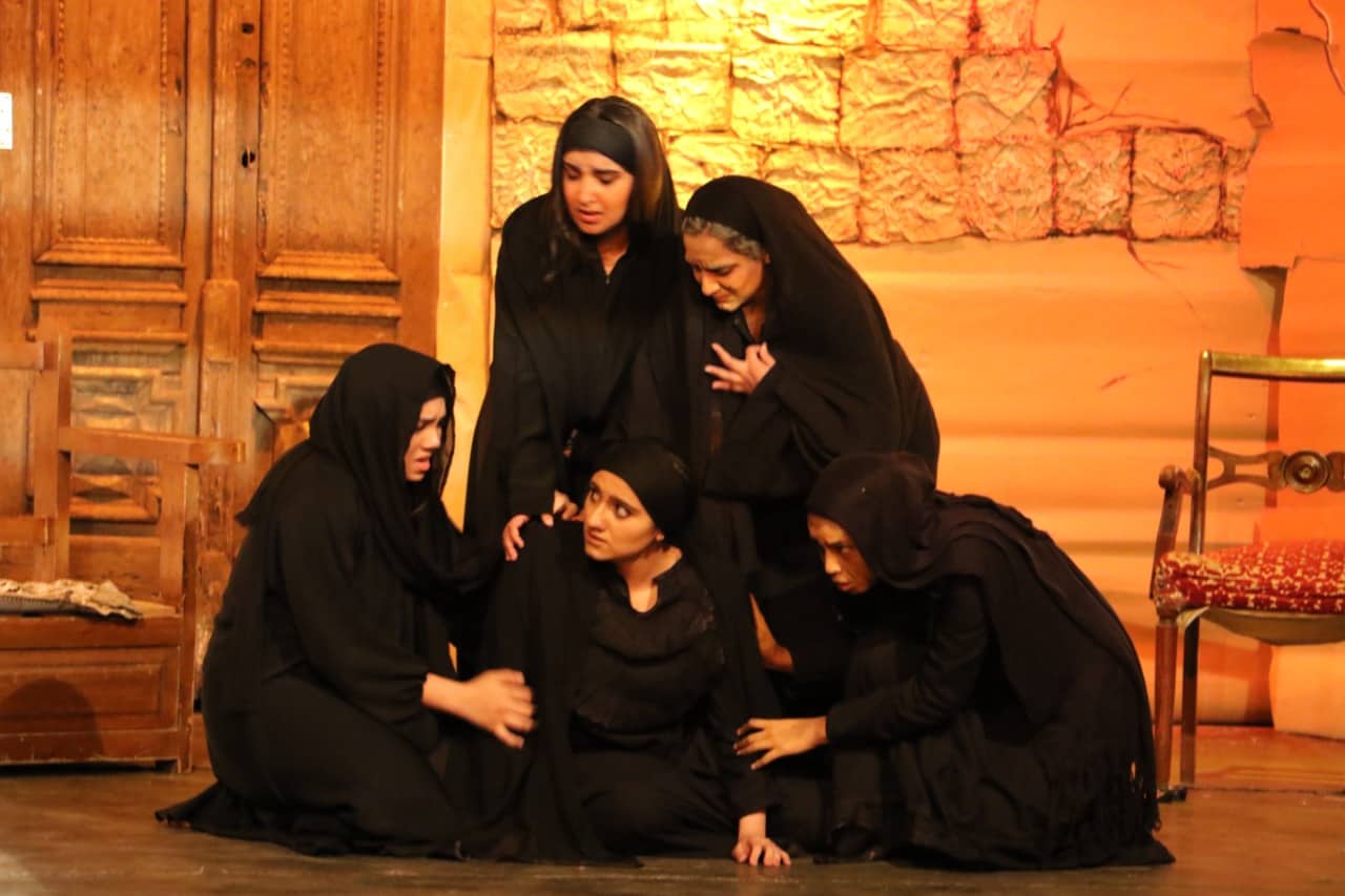 والعرض من تأليف شاذلي فرح، وإخراج علي مدحت، موسيقى وألحان شريف ياسر، وأشعار أحمد علاء علي، وتصميم ديكور حسن جمال، وتصميم وتنفيذ إضاءة أحمد طارق، ومخرج منفذ آلاء أيمن، وتمثيل نور حسن، وإسراء ناجي، وعلياء علاء، وأمل صبحي، وياسمين إسماعيل، وحبيبة هشام، وتسنيم أيمن، وتدور أحداثه في إحدى بيوت الصعيد ويتناول قضايا المرأة في الصعيد من خلال أم وبناتها وتأثير أفكار وعادات الصعيد على حياتهم، وسيطرة الأم وتحكمها وممارسة القمع عليهم والذي ينتهي بقتل الأم لابنتها.