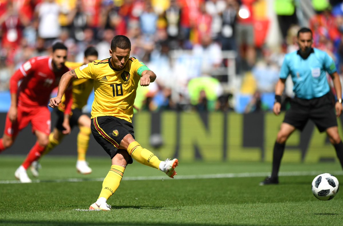 أحرز إدين هازارد، نجم المنتخب البلجيكي، الهدف الأول لفريقه في مرمى المنتخب التونسي ، بالمباراة التى تجمعهما حاليا ضمن منافسات المجموعة السابعة فى بطولة كأس العالم المقامة حاليا في روسيا، وذلك بعد 7 دقائق فقط من عمر الشوط الأول.