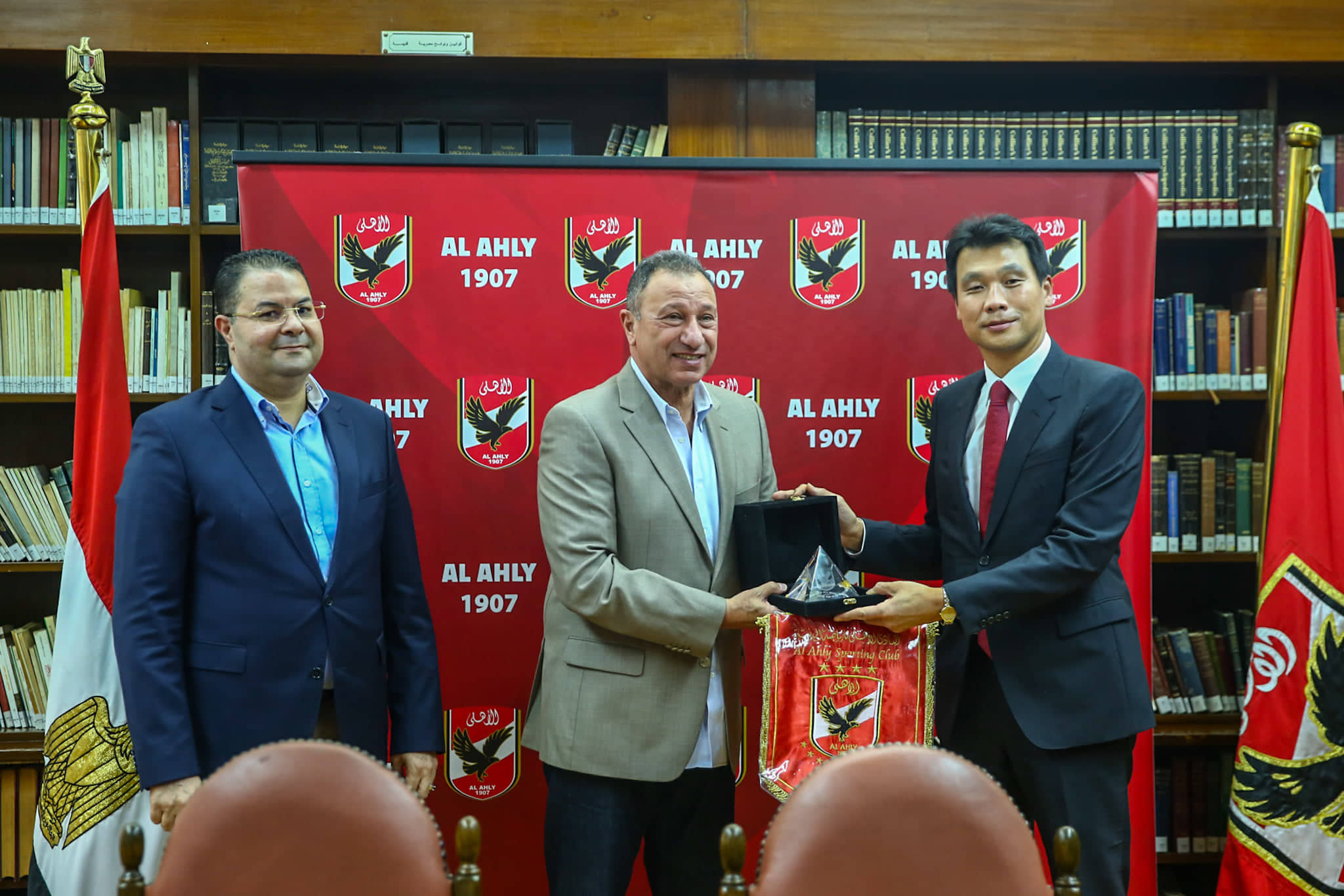 استقبل محمود الخطيب، رئيس النادي الأهلي، عصر اليوم بمقر الأهلي بالجزيرة، السيد هونج جين ووك، سفير كوريا الجنوبية في القاهرة.