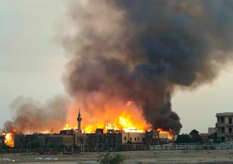 وامتدت النيران إلى باقي أجزاء الديكور المجاورة بمنطقة التصوير، ونتج عن ذلك احتراق الديكور محل البلاغ.