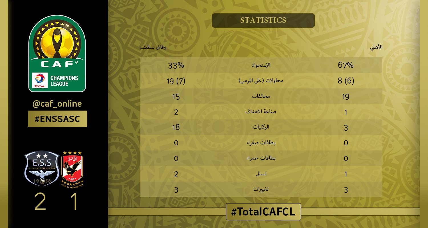 - مرور ساعة من بداية مباراة الأهلي ووفاق سطيف ومازالت النتيجة التعادل السلبي بين الفريقين