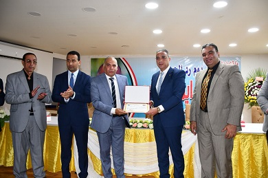 وفي ختام الحفل، سلم الدكتور أحمد الأنصاري محافظ الفيوم، المهندس أيمن نضر، درع المحافظة، وشهادة تقدير.