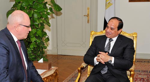 من جانبه ، أكد الرئيس على اعتزاز مصر بالعلاقات المتميزة التي تربطها بألمانيا، معربا عن التطلع لتعزيز التعاون الثنائي معها على جميع الأصعدة، ولاسيما على المستوي الاقتصادي، وأشار إلى الجهود التي تبذلها مصر في سبيل تحقيق التنمية الاقتصادية ومعالجة الاختلالات الهيكلية التي ظل الاقتصاد المصري يعاني منها لسنوات، مؤكدا على أن تحقيق ذلك يتطلب اتخاذ خطوات إصلاح جريئة وغير مسبوقة.