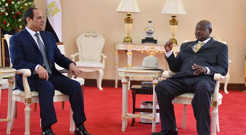 وأكد الرئيس السيسي على ما توليه مصر من أهمية خاصة لتعزيز التعاون مع أوغندا في جميع المجالات، خاصة زيادة التعاون الاقتصادي والتبادل التجاري، مشيراً إلى ضرورة تفعيل عمل اللجنة المشتركة بين البلدين وعقدها في أقرب فرصة، فضلاً عن إقامة مزيد من المشروعات التنموية المشتركة، وخاصةً في قطاعات الطاقة، وإدارة الموارد المائية والري، والزراعة والثروة الحيوانية.