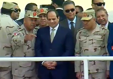 شهد الرئيس عبد الفتاح السيسي، خروج إحدى ماكينات الحفر العملاقة أسفل قناة السويس من الجانب الآخر للقناة بعد انتهاء الحفر في الأنفاق الأربعة.