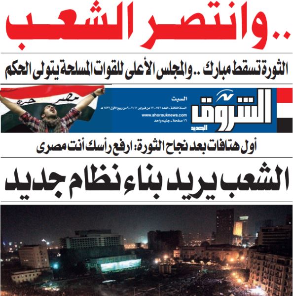 مانشيتات الصفحة الأولى لـ«الشروق» 12 فبراير 2011