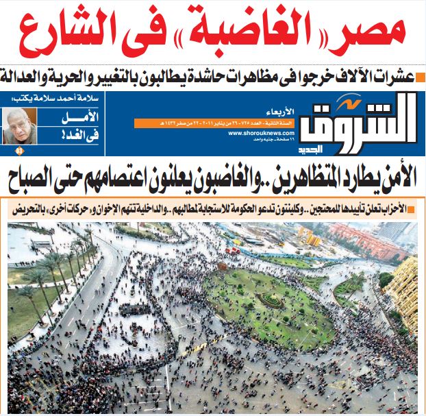 مانشيتات الصفحة الأولى لـ«الشروق» 26 يناير 2011