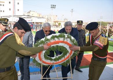 ثم قام محافظ الدقهلية، يرافقه مدير الأمن والقيادات الأمنية بالمحافظة بوضع اكليلا من الزهور على النصب التذكاري لشهداء الشرطة بمعسكر قوات الأمن بسندوب.