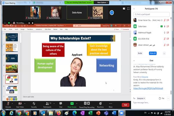 وبعد انتهاء الورشة وبعد الإجابة عن كل أسئلة الحضور، تم متابعة آراء ومقترحات الحضور فيما يخص أهداف الورشة، وذلك للاستفادة من تلك المقترحات في سلسلة ورش العمل القادمة، وجارى حالياً التجهيز للإعلان عن موعد الحلقة الثالثة من سلسلة حلقات "Technical Support Webinars"، التى سيتم تخصيصها لعرض أهم الإرشادات الخاصة بإعداد المستندات الورقية المطلوبة فى المنح مثل خطاب الدافع وخطاب التوصية والسيرة الذاتية.
