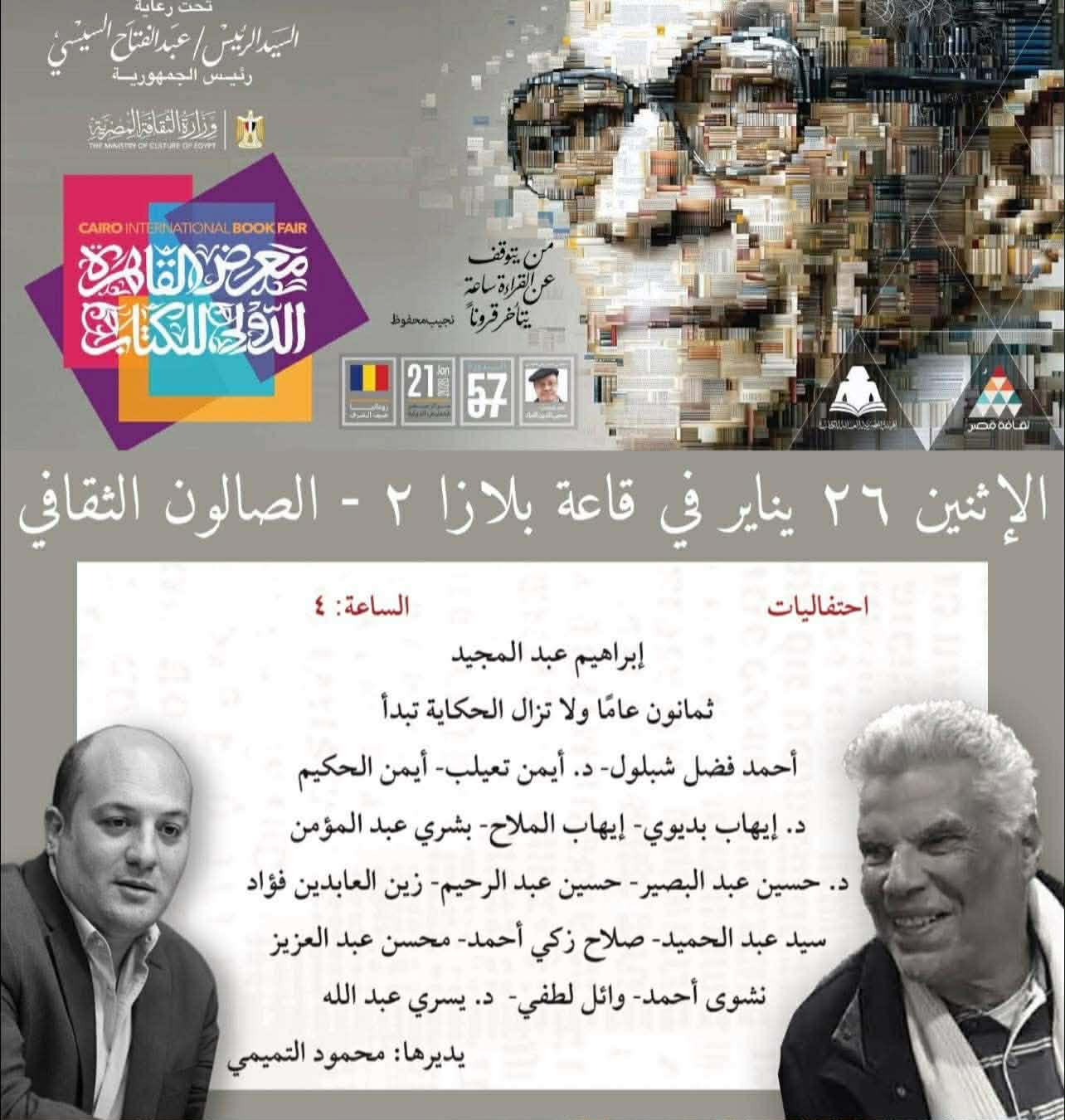 يستضيف معرض القاهرة للكتاب، مساء الاثنين 26 يناير، احتفالية خاصة لتكريم الأديب الكبير إبراهيم عبد المجيد، تحت عنوان «ثمانون عامًا ولا تزال الحكاية تبدأ»، وذلك في قاعة بلازا 2 بالصالون الثقافي، في تمام الساعة الرابعة مساءً.