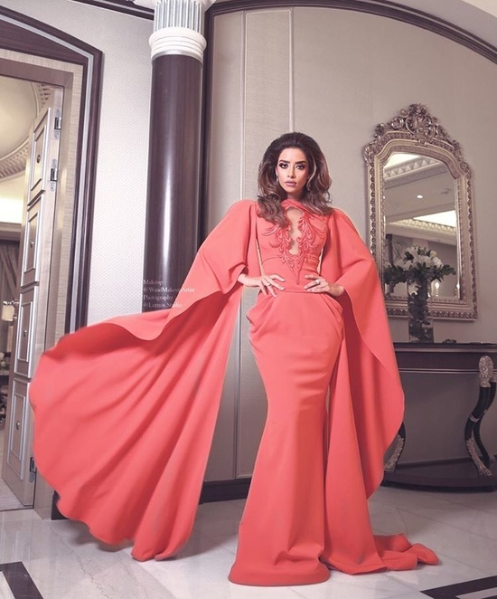 اتسمت إطلالة بلقيس فتحي بالأنثوية والرقي، حيث تميز الفستان بقصة أكمامه الطويلة على طريقة فساتين الكيب وبالتفاصيل على الصدر .