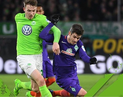 على ملعب فولكسفاجن ارينا وامام 30 الف متفرج، افتتح الدولي الالماني سيرج غنابري التسجيل لفيردر بريمن بعد مجهود فردي داخل المنطقة (10)، ثم عزز اللاعب نفسه تقدم الفريق الزائر اثر ركلة حرة من السنغالي لامين سانيه (18) رافعا رصيده الشخصي الى 10 اهداف في البطولة.