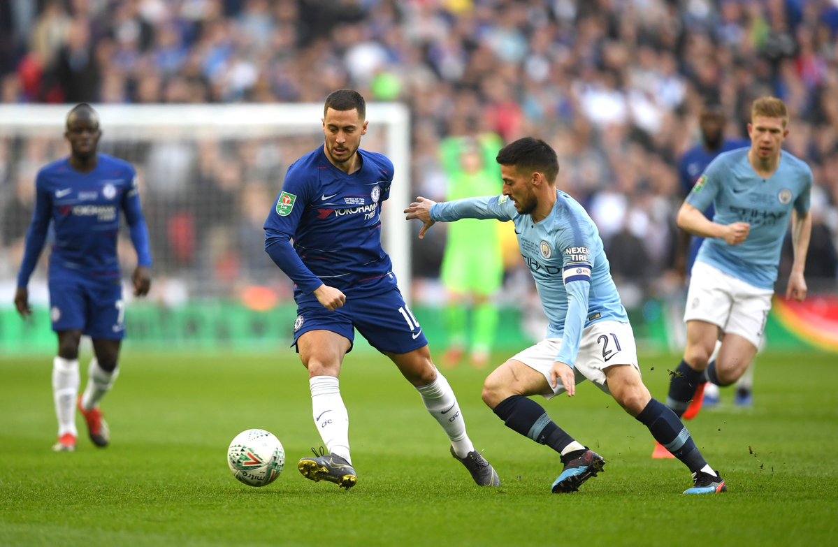 * الدقيقة 45 أخطر هجمة لتشيلسي مرواغات من إيدين هازارد لمدافعي السيتي، لكن مدافعي المواطنون بالمرصاد.