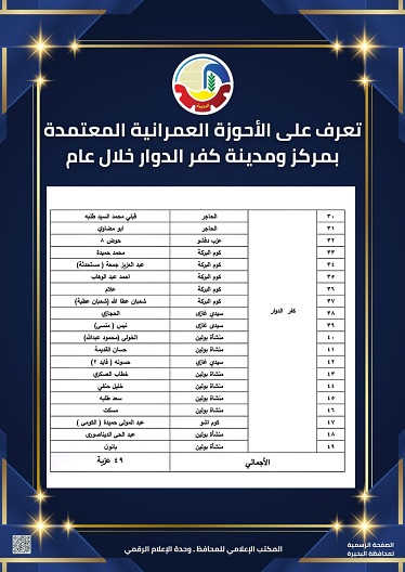 وأشارت إلى أن الأحوزة العمرانية التي تم اعتمادها بمركز ومدينة كفر الدوار على مدار عام قد شملت تحديث الحيز العمراني لعدد 13 قرية واعتماد حيز عمرانى جديد لـعدد 49 عزبة.