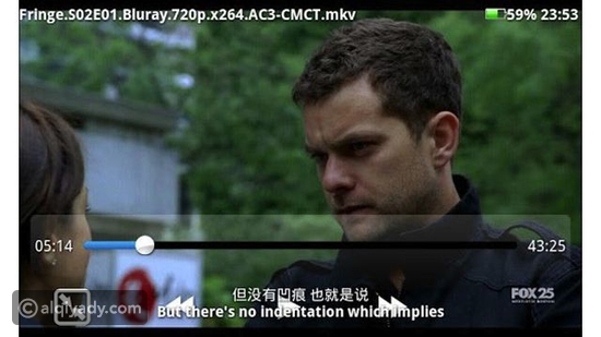 الأقرب في إمكانياته من مشغل MX، قادر على تشغيل أغلب ملفات الفيديو وأكثرها انتشاراً، يمكن اعتباره واحد من الخيارات القوية في تلك القائمة وإن كان يحتاج إلى هاتف ذو معالج قوي حيث يعتمد في تشغيل الملفات على التطبيق مما يحمل الهاتف جهداً كبيراً.