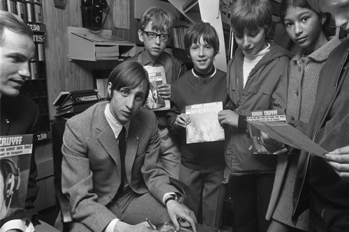 9- كرويف وسط المعجبين في 1969 ، بعد أن اصبح نجمًا له محبيه بتألقه اللافت مع اياكس والمنتخب الهولندي