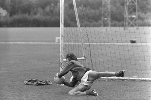 8- كرويف حارسًا للمرمى في تدريب المنتخب الهولندي عام 1969