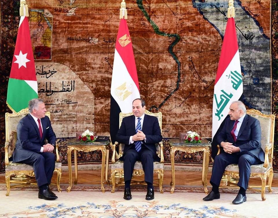 شارك الرئيس عبد الفتاح السيسي، اليوم الأحد، في أعمال القمة المصرية الأردنية العراقية؛ لبحث القضايا الإقليمية والتعاون الاقتصادي وتعزيز العمل العربي المشترك بين الدول الثلاث مع كل من العاهل الأردني الملك عبد الله الثاني، ورئيس الوزراء العراقي عادل عبد المهدي.