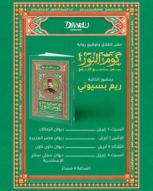 وتبدأ الجولة، من فرع ديوان الزمالك يوم السبت الموافق 4 أبريل، وتنتقل إلى فرع مصر الجديدة يوم الاثنين 6 أبريل، ثم فرع داون تاون يوم الثلاثاء 7 أبريل، وتختتم الكاتبة جولتها في ديوان سيتي سنتر الإسكندرية يوم السبت 11 أبريل، على أن تبدأ جميع اللقاءات في تمام الساعة السابعة مساءً.