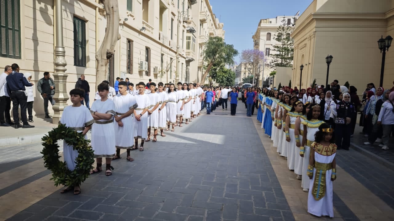 وانطلقت الفعاليات بموكب احتفالي حاشد بدأ من أمام المتحف اليوناني الروماني بشارع فؤاد، حيث اصطف المشاركون في مشهد احتفالي مُبهج، حاملين الأعلام والزهور، ومصحوبين بعروض موسيقية واستعراضية جذبت أنظار الحضور.