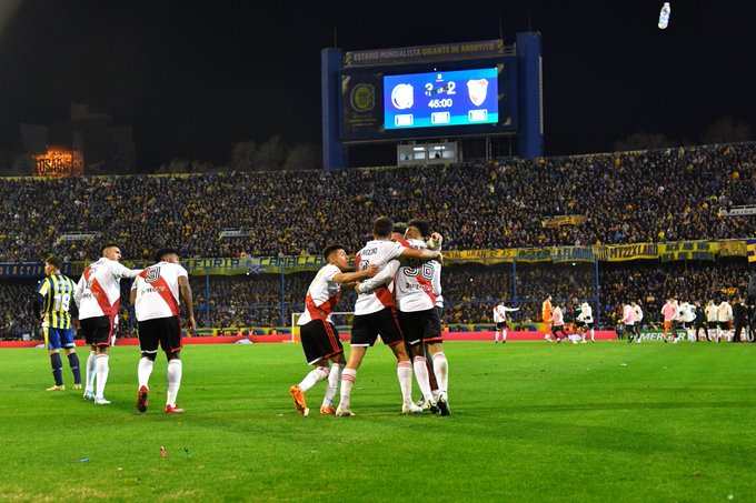 وفي الشوط الثاني، تعادل ريفر بليت بهدف للاعب سالمون روندون في الدقيقة 50 ثم تقدم روزاريو مجددا بالهدف الثاني لأليخو فيليز في الدقيقة 74 وتعادل بابلو سولاري لريفر بليت في الدقيقة 78 .