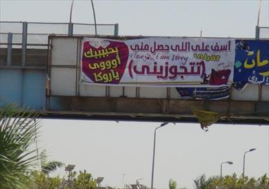 وكتب الشاب في اللافتة: «أسف على اللي حصل مني تقبلي تتجوزيني، بحبك أوي يا روكا».
