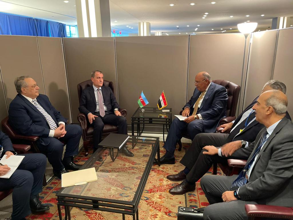 التقى سامح شكري وزير الخارجية، على هامش أعمال الجمعية العامة للأمم المتحدة يوم 23 سبتمبر 2022، وزير خارجية أذربيجان جيهون بيراموف.