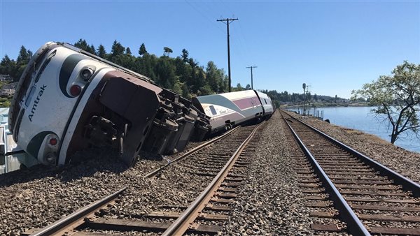 وجرى استدعاء موظفي السكك الحديدية والرافعات لإصلاح العربات المنحرفة عن مسارها.