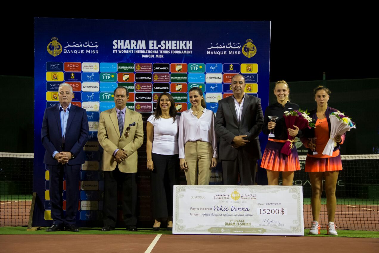 وقدم اللواء خالد فودة جائزة المركز الاول الي البطلة الكرواتية دونا فيكتش مؤكدا علي ان المباراة جاءت قوية للغاية وانه والجماهير الحاضرة استمتعوا بها للغاية وموجها التهنئة الي اللجنة المنظمة للبطولة برئاسة محمد الغزاوي بعد النجاح الكبير والمساهمة بقوة في الترويج للسياحة المصرية .