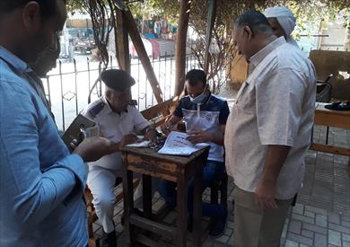ووجه رجال تأمين اللجان، الناخبين، باتباع الإجراءات الاحترازية قبل الدخول للتصويت.