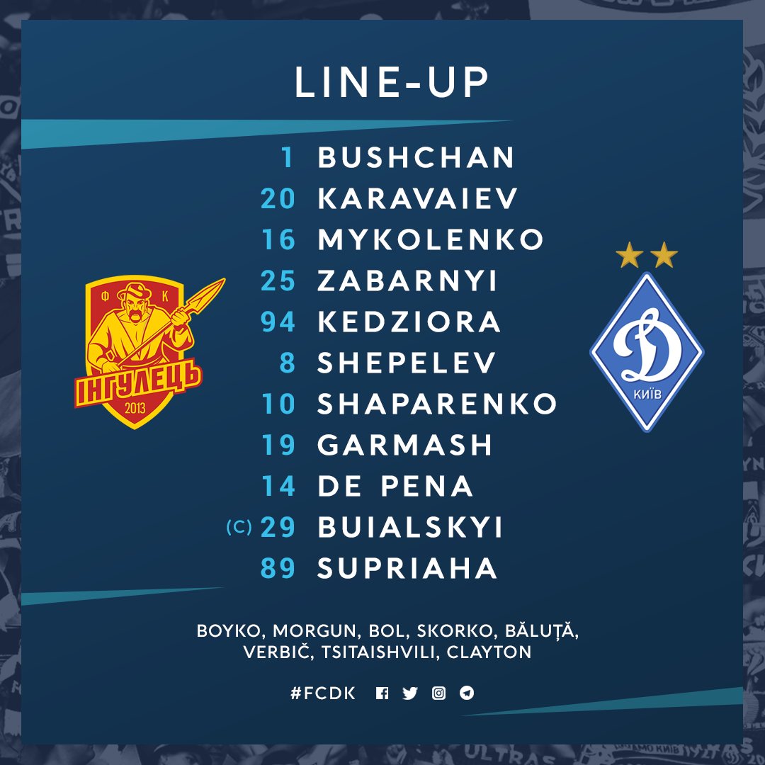 في المقابل أعلن ميرسيا لوسيسكو المدير الفني لفريق دينامو كييف عن تشكيل فريقه والذي جاء على النحو التالي: