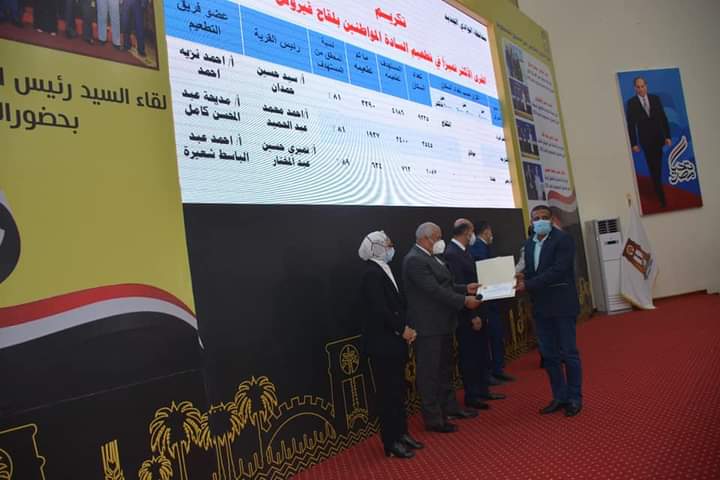 ولفت إلى تكريم رؤساء القرى الأعلى في نسب تطعيم المواطنين بلقاح فيروس كورونا وأعضاء الطاقم الطبي، وهم: سيد حسين، وأحمد نزيه (قرية الكفاح بالفرافرة)، أحمد محمد، ومديحة عبد المحسن (قرية بولاق بالخارجة)، ونميري حسين، وأحمد عبد الباسط (قرية جدة بباريس)، بالإضافة إلى تكريم المواهب المتميزة في الشعر وهما الطالبة أسماء طه والطفلة دانا محمد.