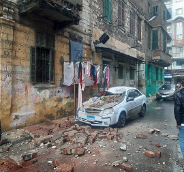 وبانتقال الشرطة، ومسئولي الحي، ووحدة الإزالة إلى موقع البلاغ، تبين من المعاينة والفحص الأولي سقوط أجزاء من شرفة الطابق الثاني على السيارة التي تصادف وقوفها أمام العقار وتسببت في تحطمها.