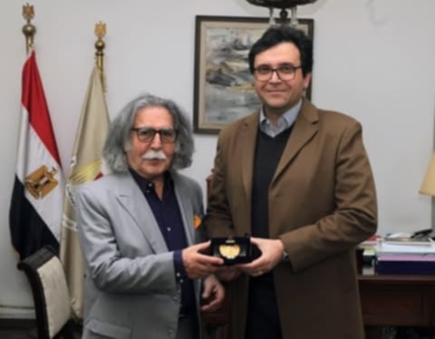 التقى الدكتور أحمد فؤاد هنو، وزير الثقافة، بالفنان التشكيلي العراقي الكبير ضياء العزاوي، الحاصل على جائزة النيل للمبدعين العرب لعام 2023، وذلك في إطار تقدير الدولة لقامات الإبداع العربي التي أسهمت في تشكيل الوعي الفني والثقافي الحديث.