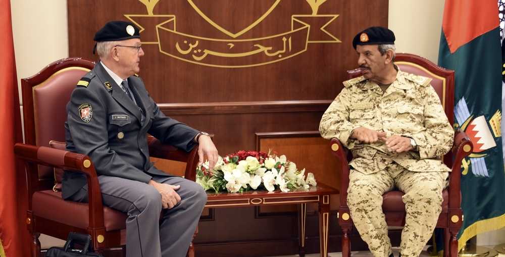 بحث القائد العام لقوة دفاع البحرين المشير الركن الشيخ خليفة بن أحمد آل خليفة اليوم الاثنين، مع الملحق العسكري بسفارة الاتحاد السويسري العقيد جيرولامو ماتيزي، المقيم في أبوظبي، علاقات الصداقة والتعاون القائمة بين البلدين وسبل تعزيزها.