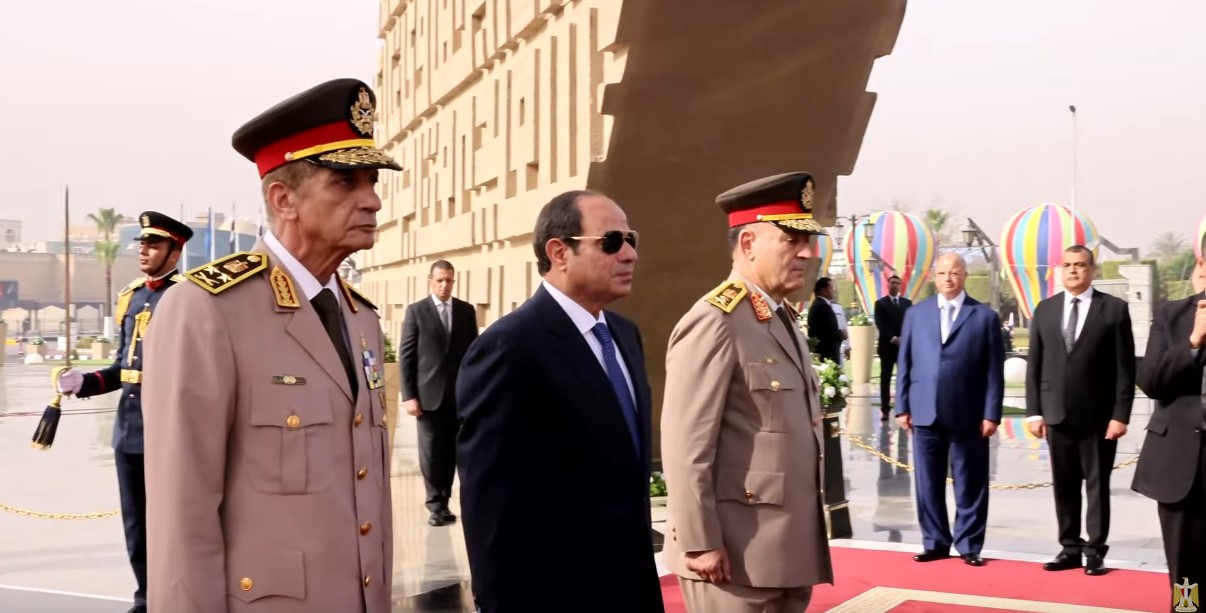 وقام الرئيس عبد الفتاح السيسى رئيس الجمهورية القائد الأعلى للقوات المسلحة يرافقه الفريق أول محمد زكى القائد العام للقوات المسلحة وزير الدفاع والإنتاج الحربى والفريق أسامة عسكر رئيس أركان حرب القوات المسلحة، بوضع إكليل من الزهور على النصب التذكارى لشهداء القوات المسلحة بمدينة نصر.