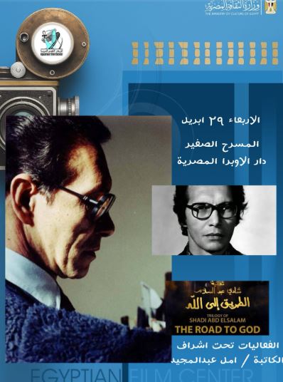 يقيم مركز الثقافة السينمائية، التابع للمركز القومي للسينما برئاسة الدكتور أحمد صالح، أمسية سينمائية مميزة، بالتعاون مع إدارة التنشيط الثقافي والفكري بدار الأوبرا المصرية، وذلك في تمام السابعة مساء الأربعاء المقبل، إذ يُعرض خلالها ثلاثية «الطريق إلى الله»، آخر أعمال المخرج الراحل شادي عبد السلام.